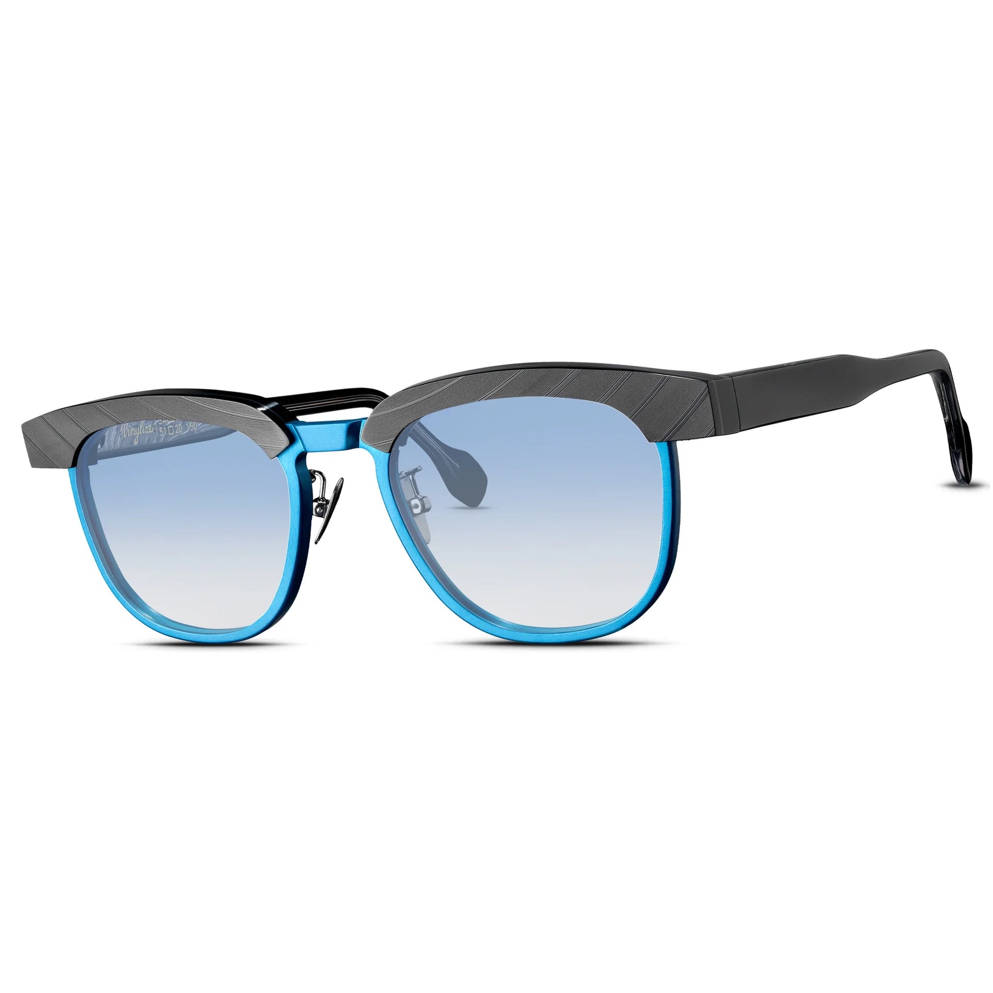 Anodized aluminium with reclaimed vinyl record.